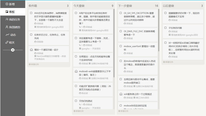進入任務管理頁面,系統默認顯示任務看板,看板列出操作者正在處理的任務、。