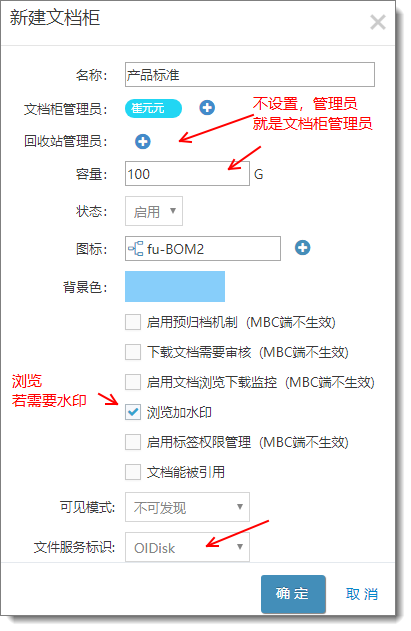 1)創建(文檔柜),并設置文檔柜管理員及文檔柜回收箱管理員。(文檔柜管理員與回收箱管理可以是不通的人;超級管理員不能是文檔柜管理員)