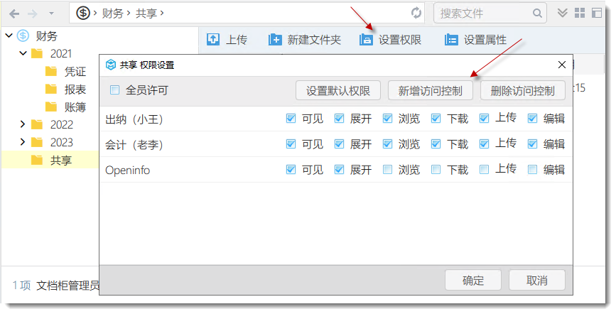 創建文件夾:系統只允許文檔柜管理員或文件夾管理員才能創建文件夾