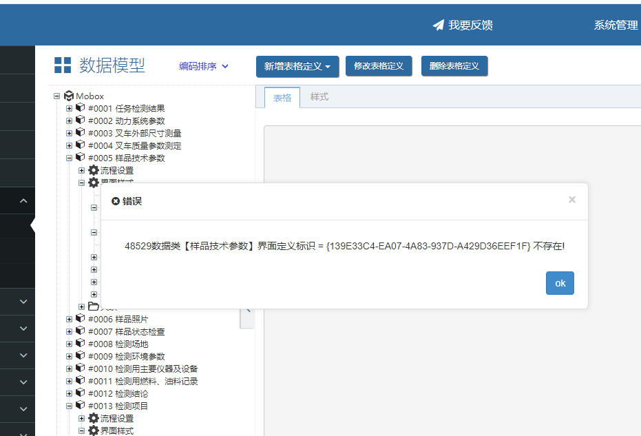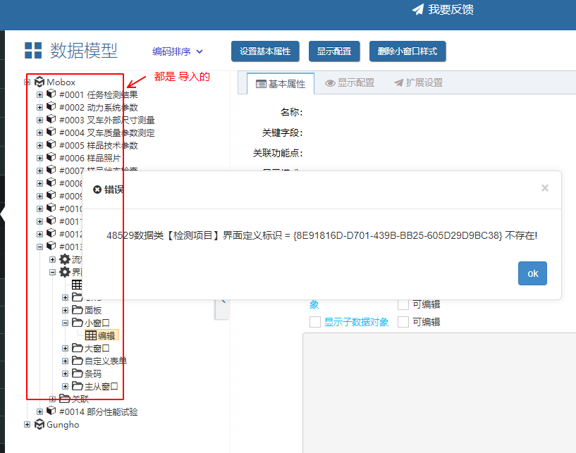 Mobox2數據模型導入后-小窗口或grid點擊報錯(不存在) 2024/02/29 分類:產品中心 問題中心 604 mobox2數據模型導入后 (導入后 提示成功,并沒有提示錯誤) 若點擊模型對象的小窗口,或grid 系統(tǒng)提示錯誤 如 小窗口點擊后報錯 或 grid 點擊后報錯 解決方法 將數據對象重新導入一次 導入后,再次提示 成功 ,如 之后,再點擊前面出錯的小窗口或grid 就正常了 標簽:問題 上一篇: Gungho項目管理系統(tǒng)界面自定義配置 下一篇: Gungho項目擴展屬性二次開發(fā)的實現過程