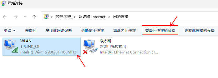 找到你的電腦鏈接的wifi適配器雙擊,或者選中后點(diǎn)擊圖上指出的“查看此鏈接狀態(tài)”