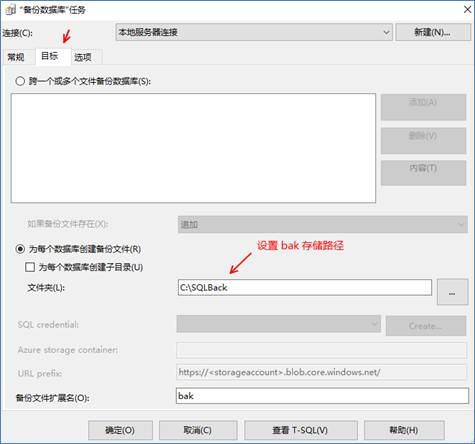4、在彈出窗口中,先選擇“備份類型”(完整/差異/事務日志),然后選擇您要備份的具體一個或多個數據庫。如您所見,您可以選擇備份所有數據庫、系統數據庫、用戶數據庫和特定數據庫。之后再選擇一個用于存放此備份的目標路徑,點擊“確定”