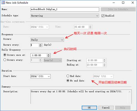 5、單擊“子計劃時間表”(日歷圖標)以設置SQLserver自動備份頻率