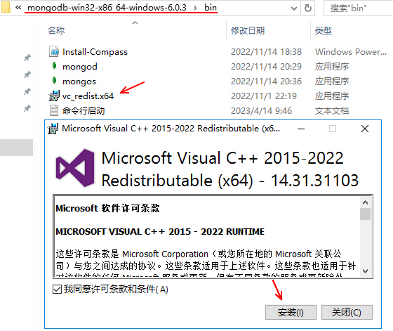 解決方法,運(yùn)行vc發(fā)行環(huán)境就可以(在mongod目錄下面有 vc環(huán)境安裝盤(pán),以管理員身份運(yùn)行)
